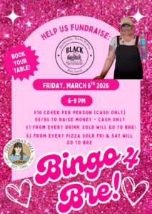As many of you know, Bre is our beloved Bingo Caller. We’ll be hosting a Bingo for Bre fundraiser on Friday March 6th ~ all the details below!
